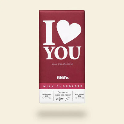 - 1x 80g GNAW ‘Love You’ Milk Chocolate Bar